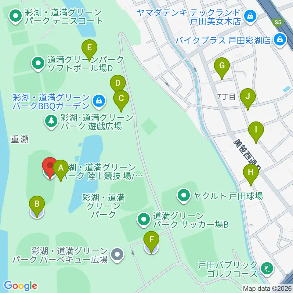 彩湖・道満グリーンパーク陸上競技場周辺の駐車場・コインパーキング一覧地図