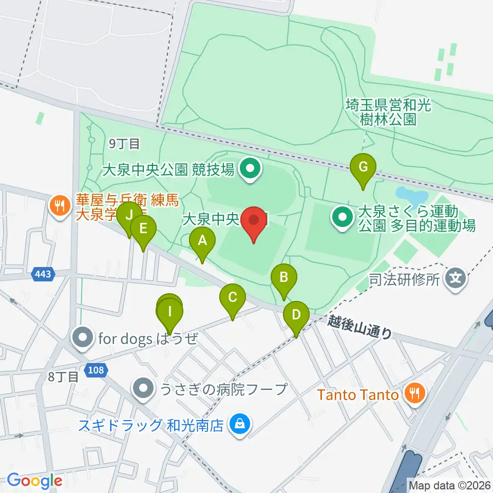 大泉中央公園野球場周辺の駐車場・コインパーキング一覧地図