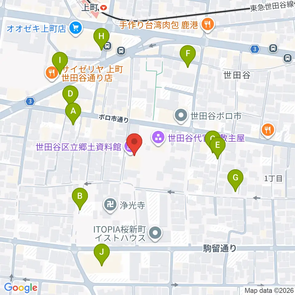 世田谷区立郷土資料館周辺の駐車場・コインパーキング一覧地図