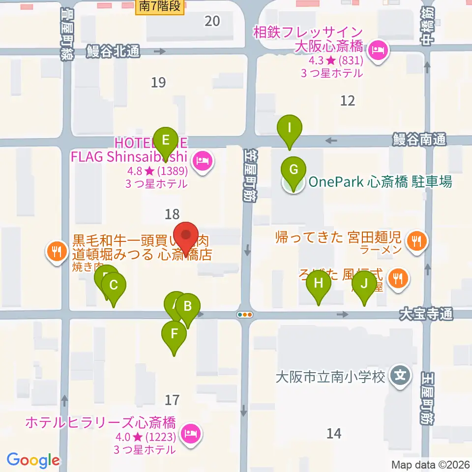 ベースオントップ東心斎橋店周辺の駐車場・コインパーキング一覧地図