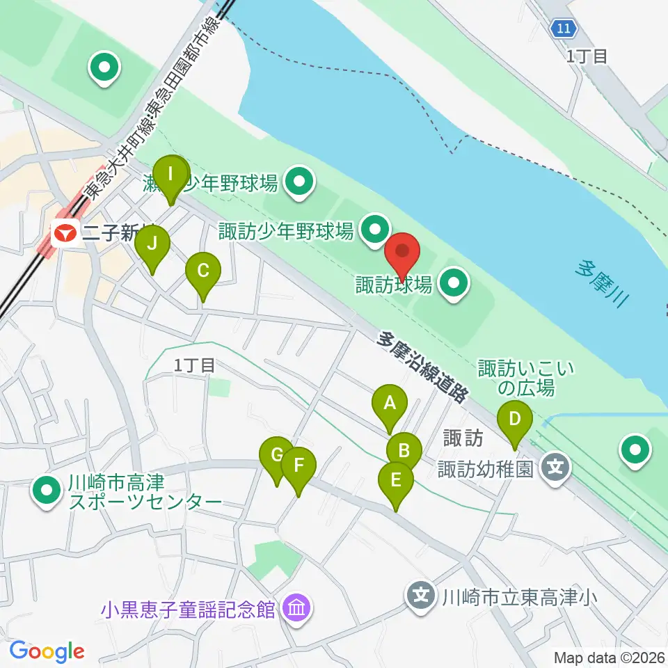 諏訪球場周辺の駐車場・コインパーキング一覧地図