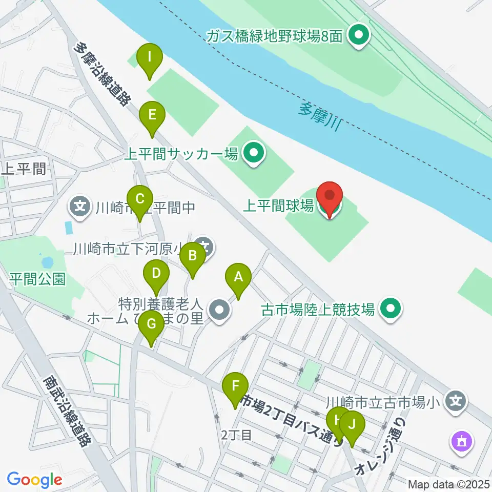 上平間球場周辺の駐車場・コインパーキング一覧地図