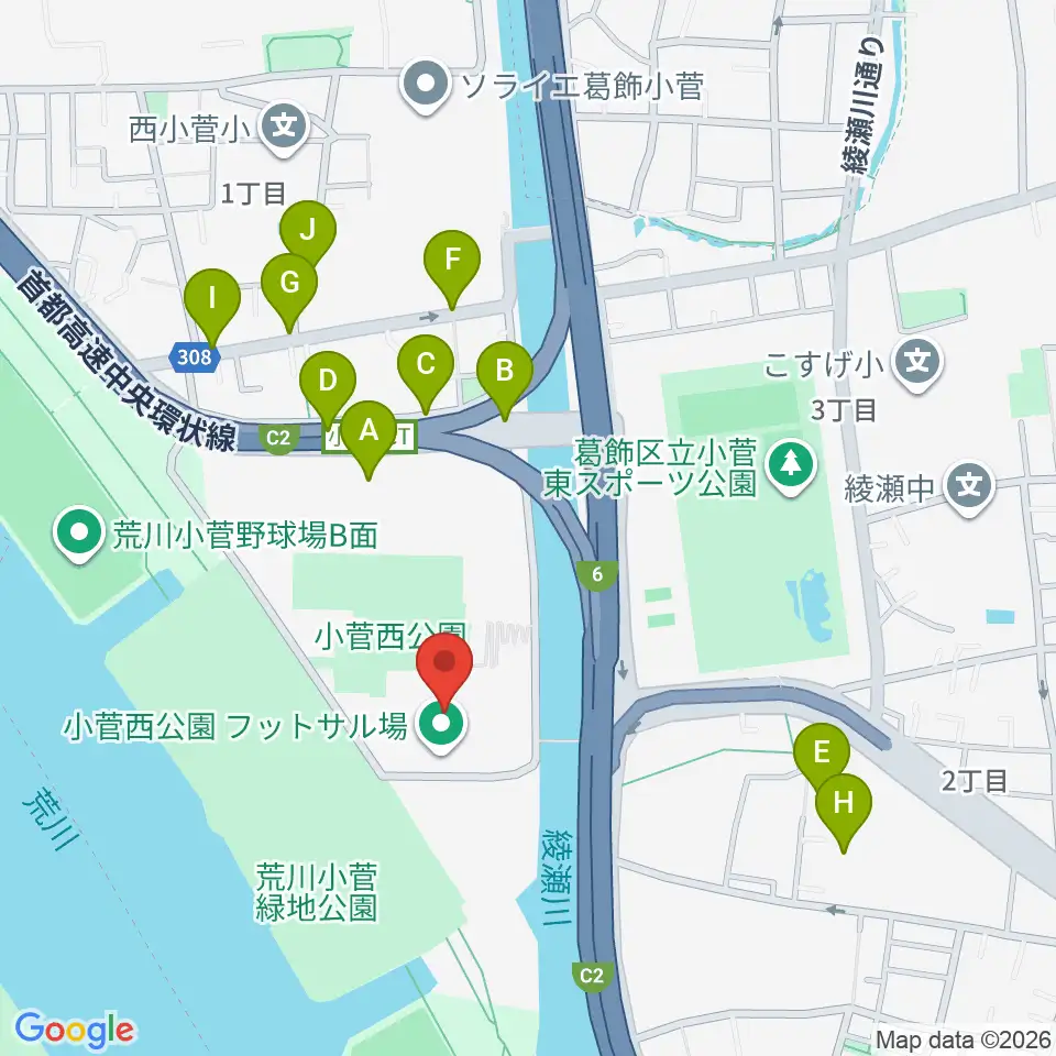 小菅西公園フットサル場周辺の駐車場・コインパーキング一覧地図