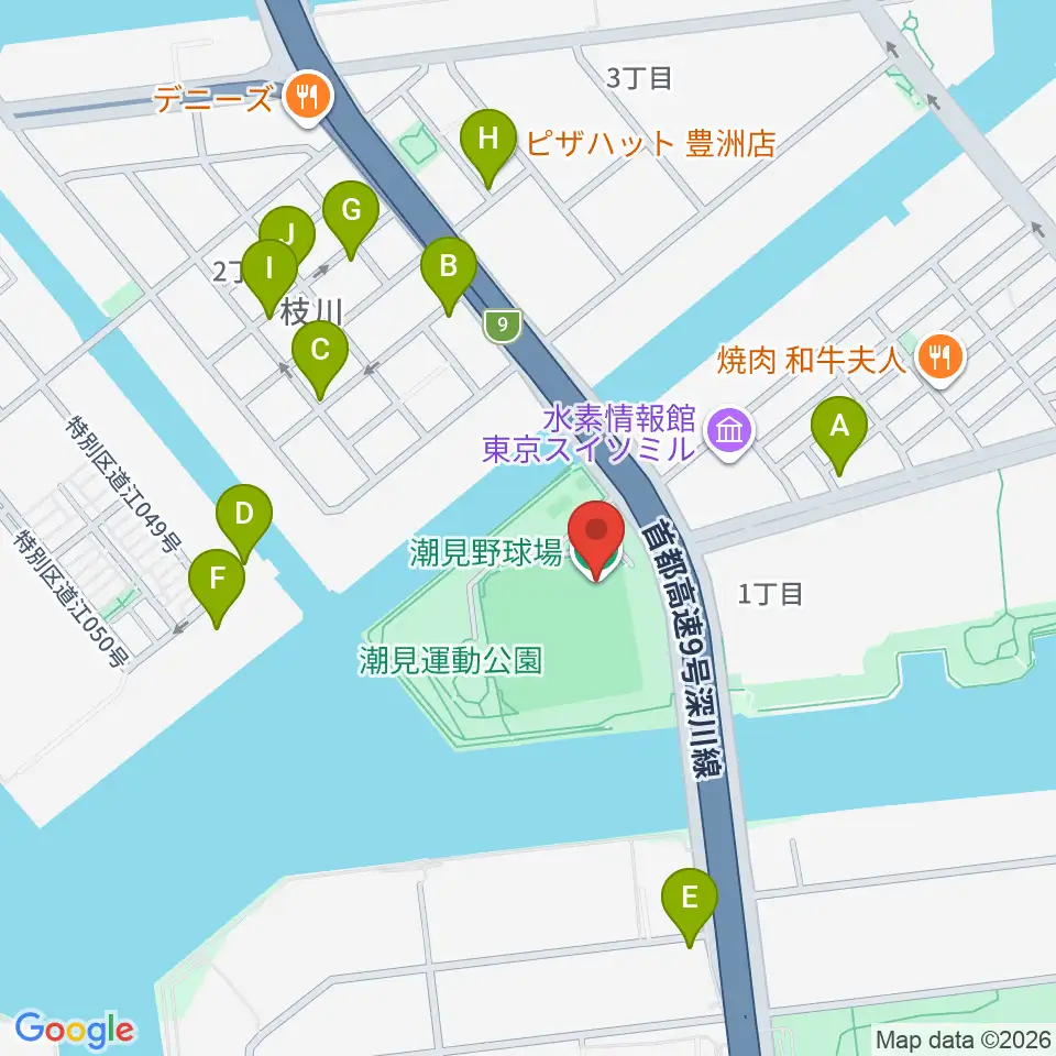 潮見野球場周辺の駐車場・コインパーキング一覧地図