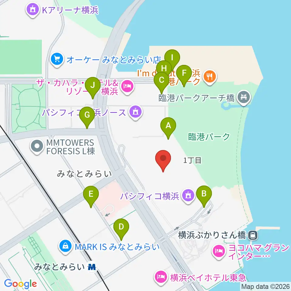 パシフィコ横浜 展示ホール周辺の駐車場・コインパーキング一覧地図