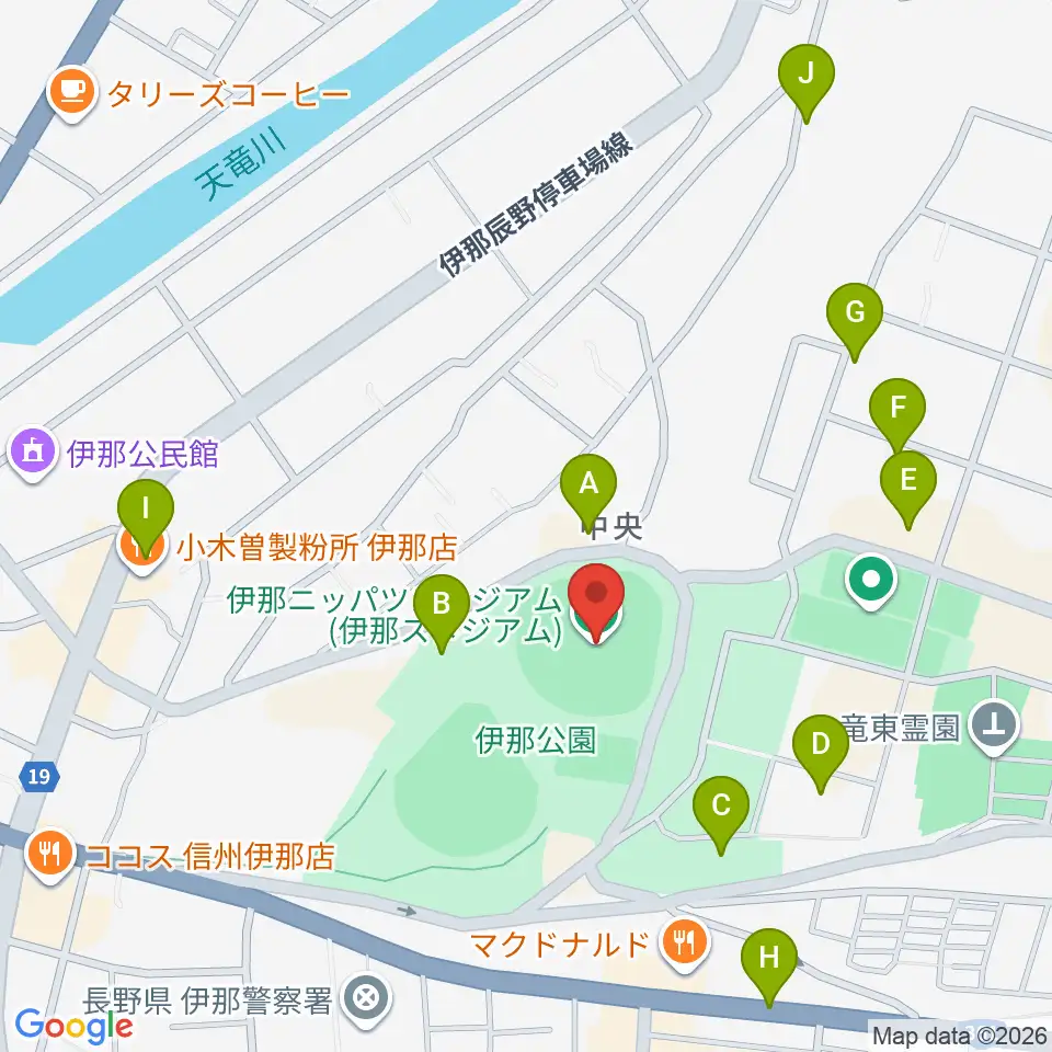 伊那ニッパツスタジアム周辺の駐車場・コインパーキング一覧地図