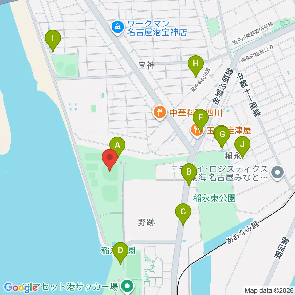 稲永公園野球場周辺の駐車場・コインパーキング一覧地図
