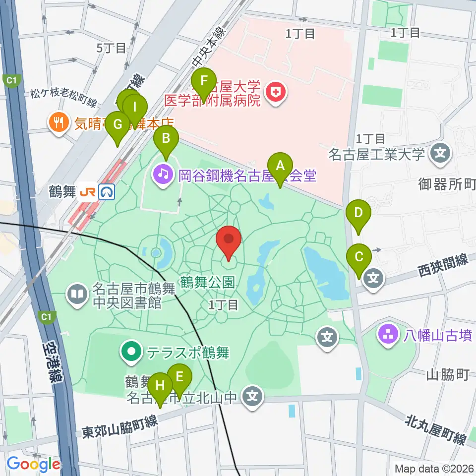 鶴舞公園奏楽堂周辺の駐車場・コインパーキング一覧地図