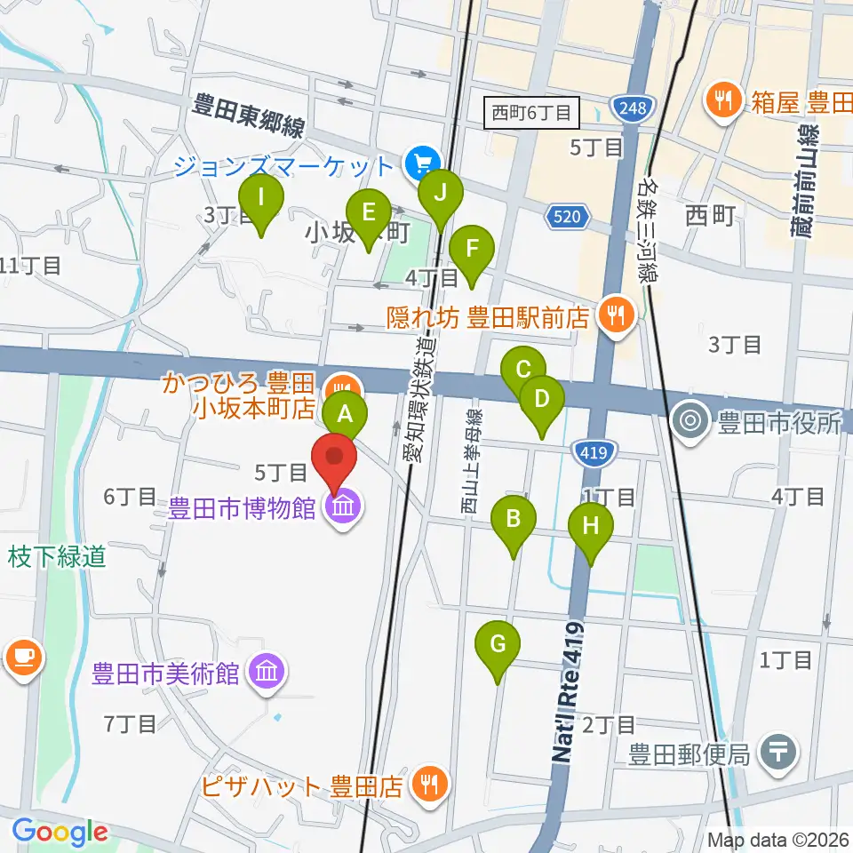 豊田市博物館周辺の駐車場・コインパーキング一覧地図