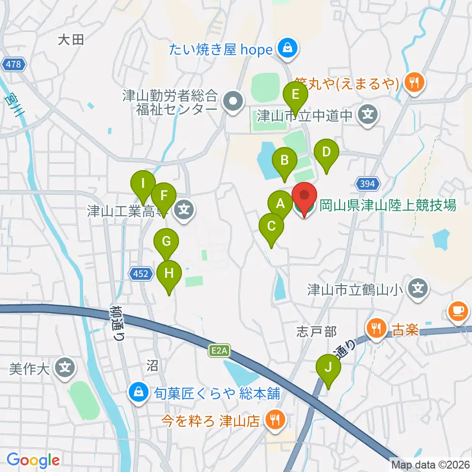 岡山県津山陸上競技場周辺の駐車場・コインパーキング一覧地図
