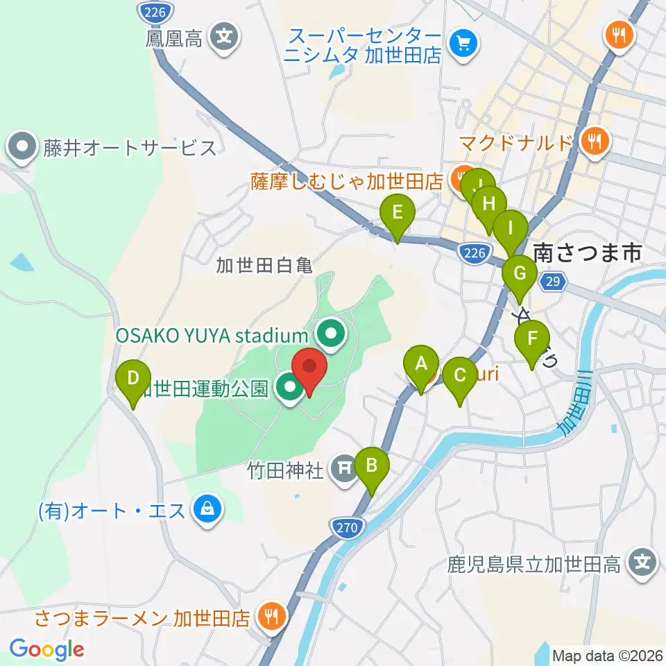 南さつま市加世田運動公園体育館周辺の駐車場・コインパーキング一覧地図