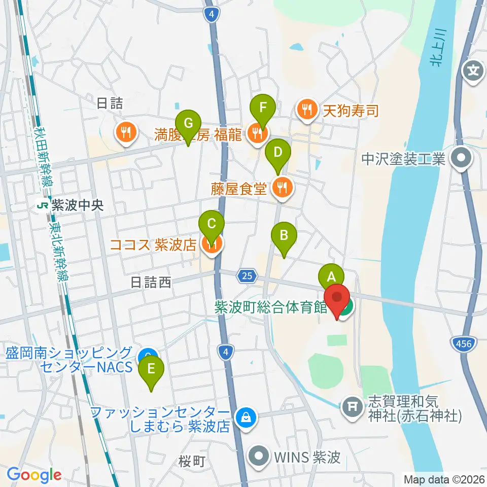 紫波町総合体育館周辺の駐車場・コインパーキング一覧地図
