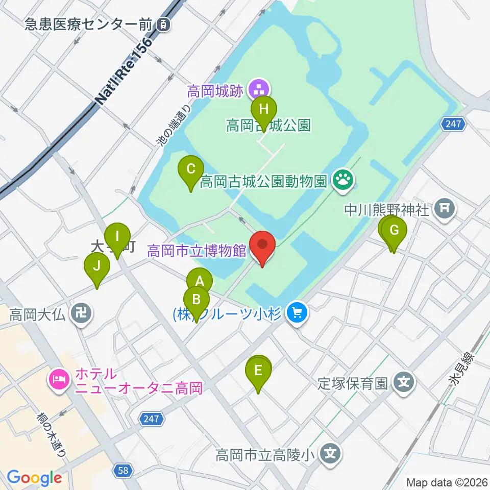 高岡市立博物館周辺の駐車場・コインパーキング一覧地図