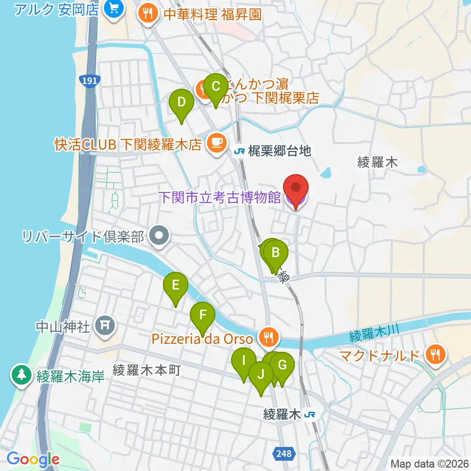 下関市立考古博物館周辺の駐車場・コインパーキング一覧地図