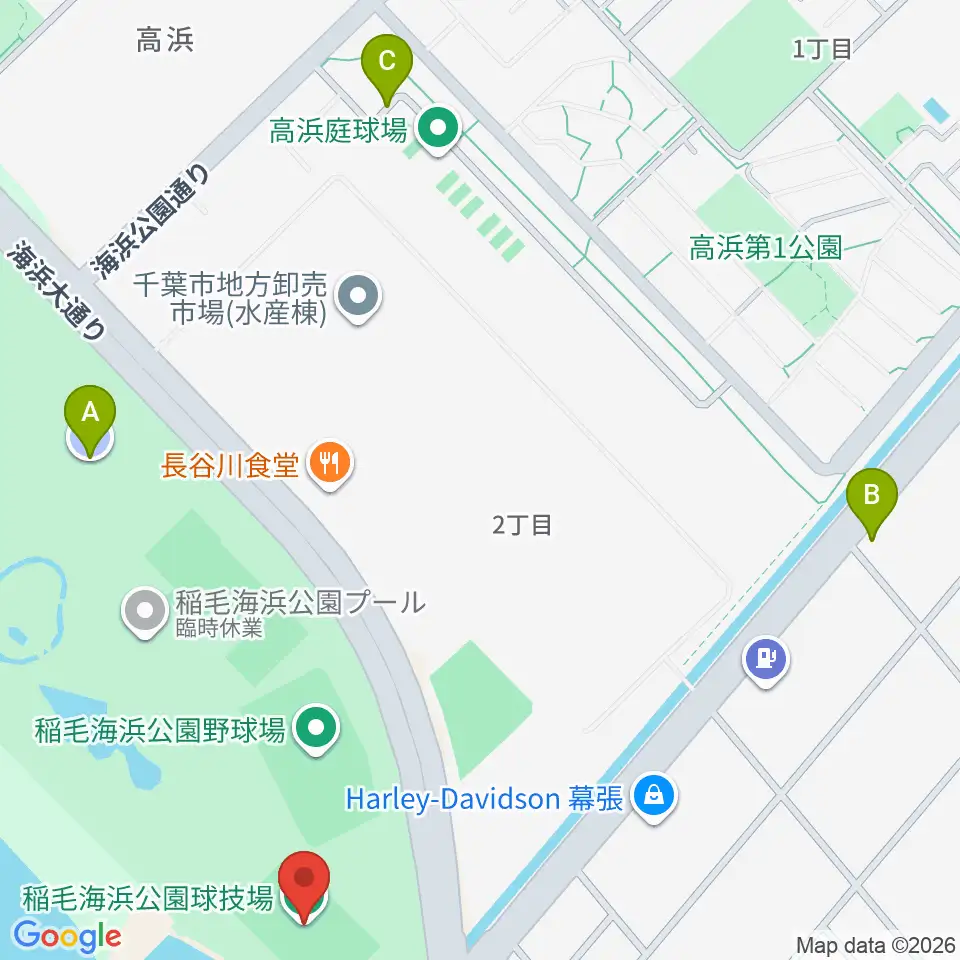 稲毛海浜公園球技場周辺の駐車場・コインパーキング一覧地図