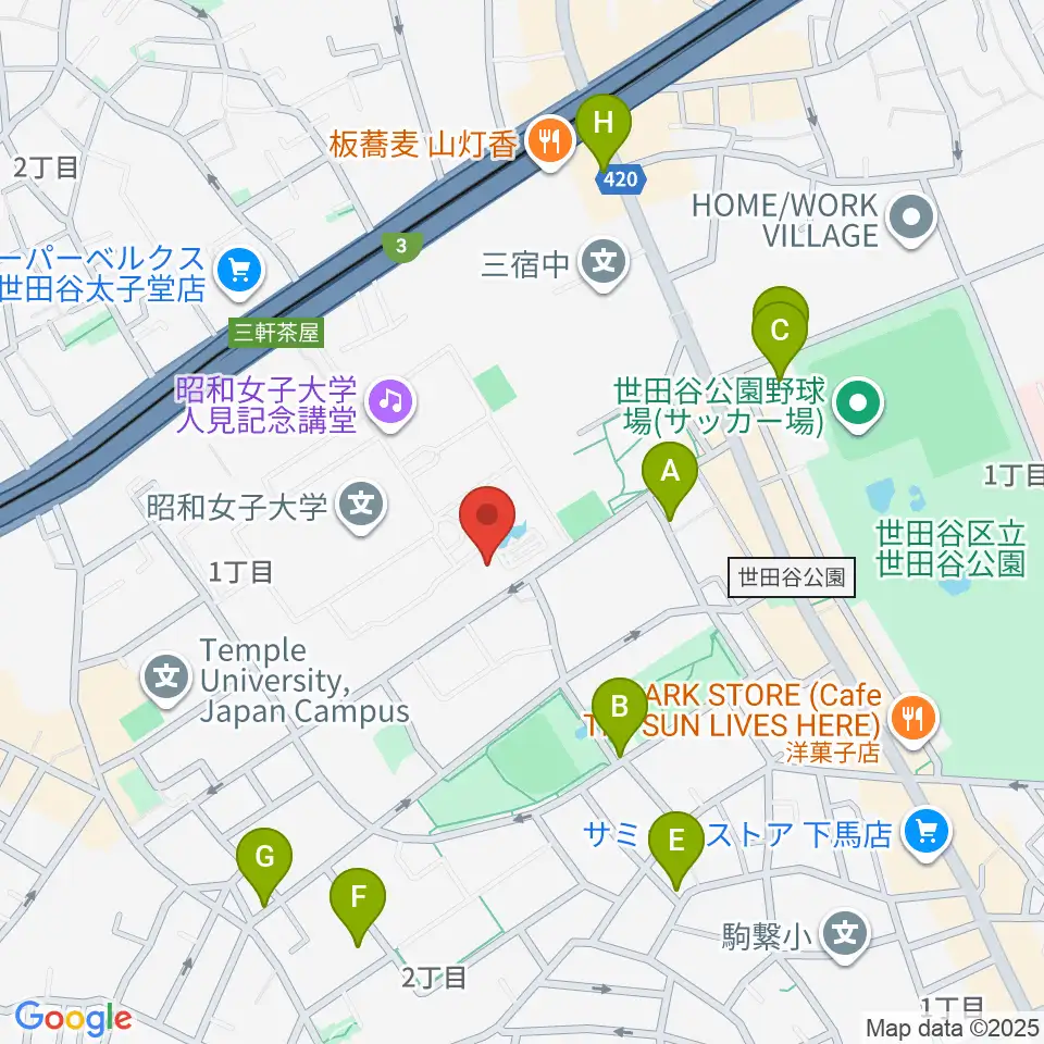 昭和女子大学光葉博物館周辺の駐車場・コインパーキング一覧地図