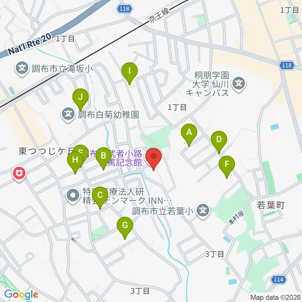 調布市武者小路実篤記念館周辺の駐車場・コインパーキング一覧地図
