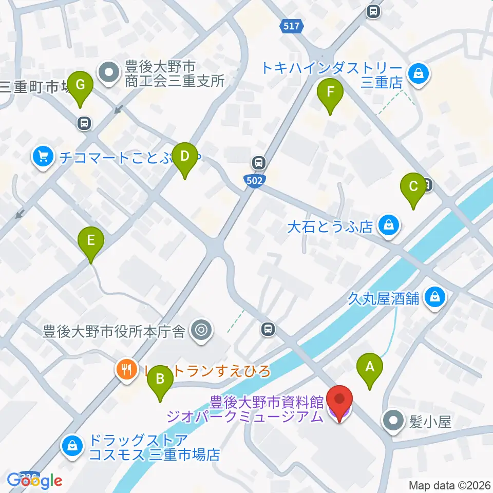 豊後大野市資料館周辺の駐車場・コインパーキング一覧地図
