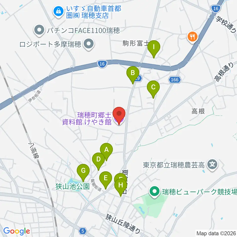 瑞穂町郷土資料館けやき館周辺の駐車場・コインパーキング一覧地図
