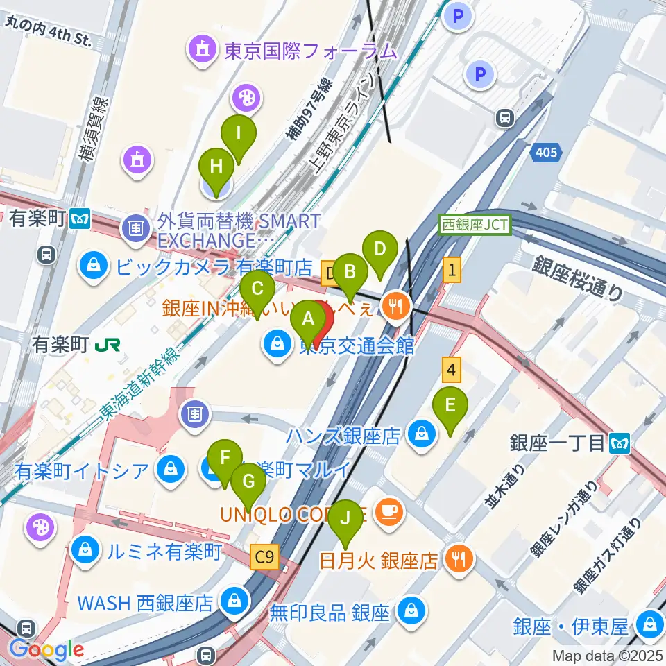 ヤマノミュージックサロン有楽町周辺の駐車場・コインパーキング一覧地図