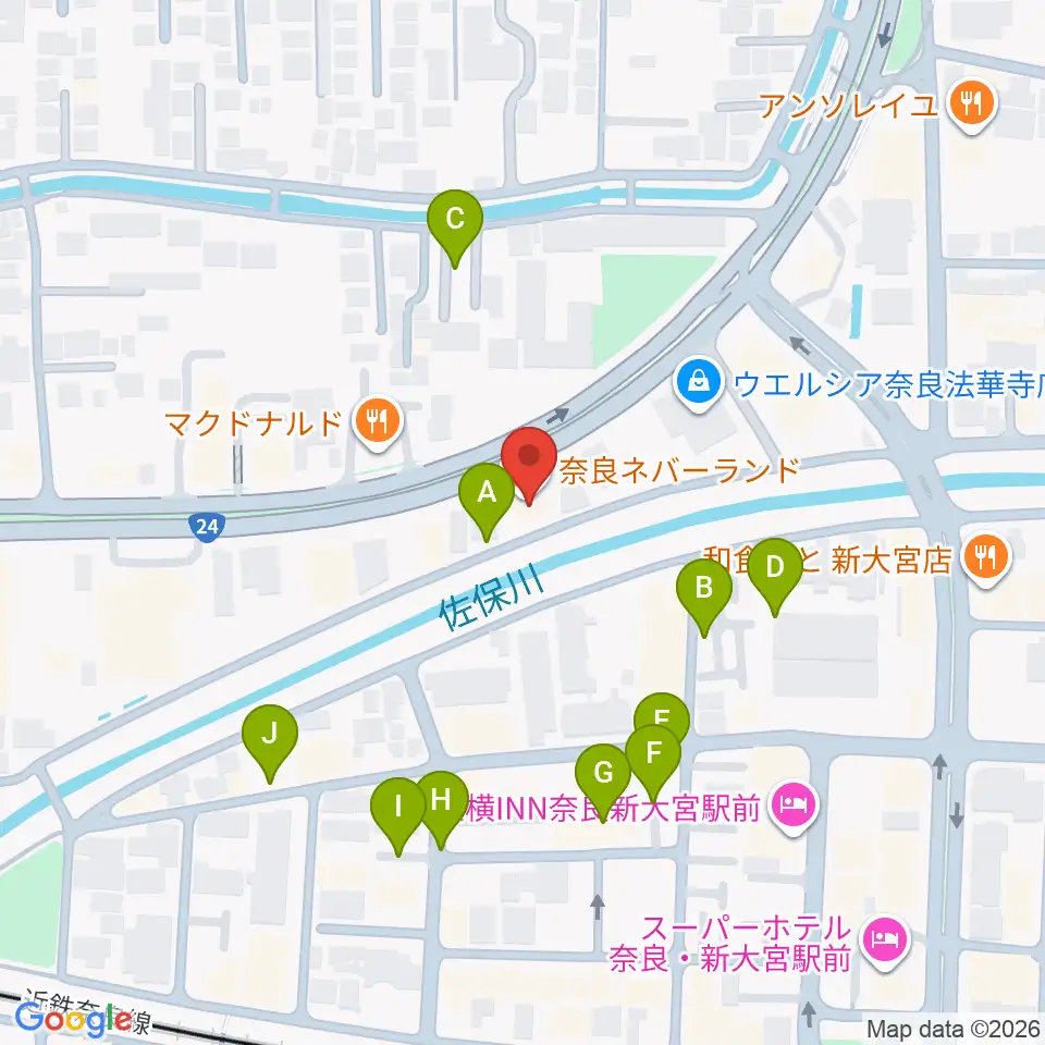 奈良ネバーランド周辺の駐車場・コインパーキング一覧地図