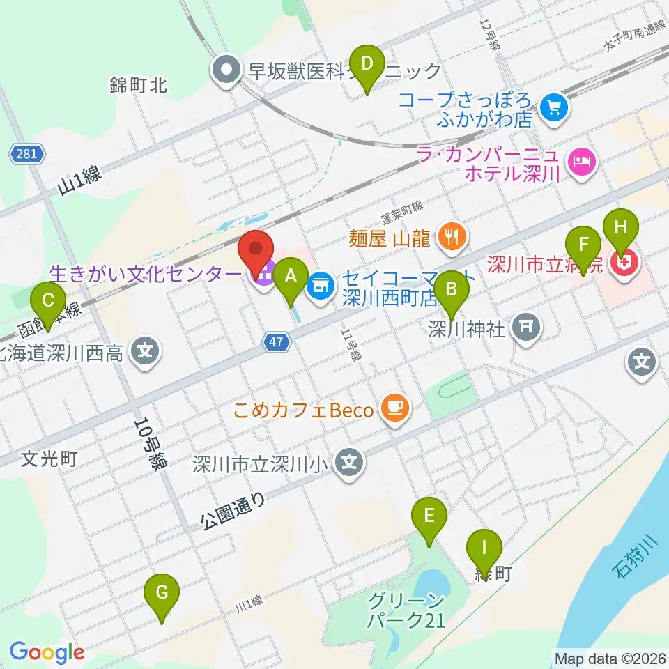 深川市生きがい文化センター周辺の駐車場・コインパーキング一覧地図
