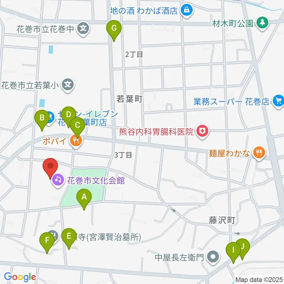 花巻市文化会館周辺の駐車場・コインパーキング一覧地図
