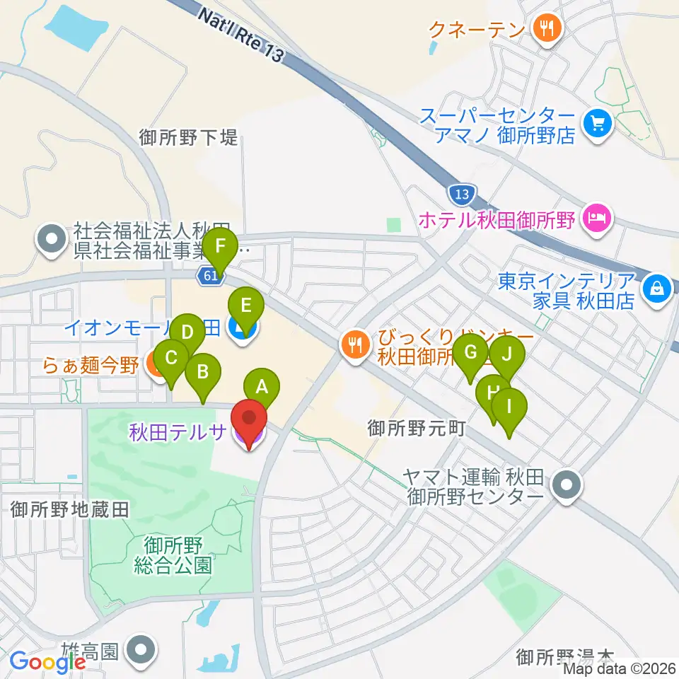 秋田テルサ周辺の駐車場・コインパーキング一覧地図
