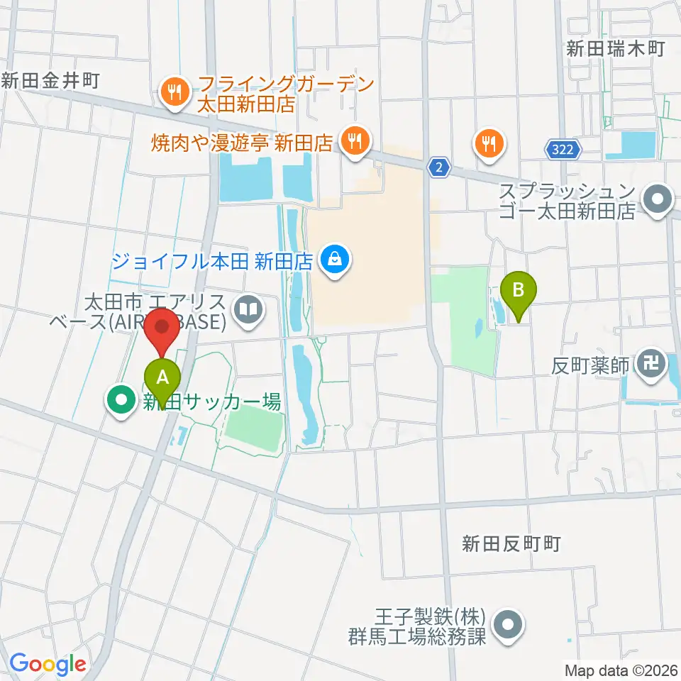 太田市新田文化会館エアリスホール周辺の駐車場・コインパーキング一覧地図