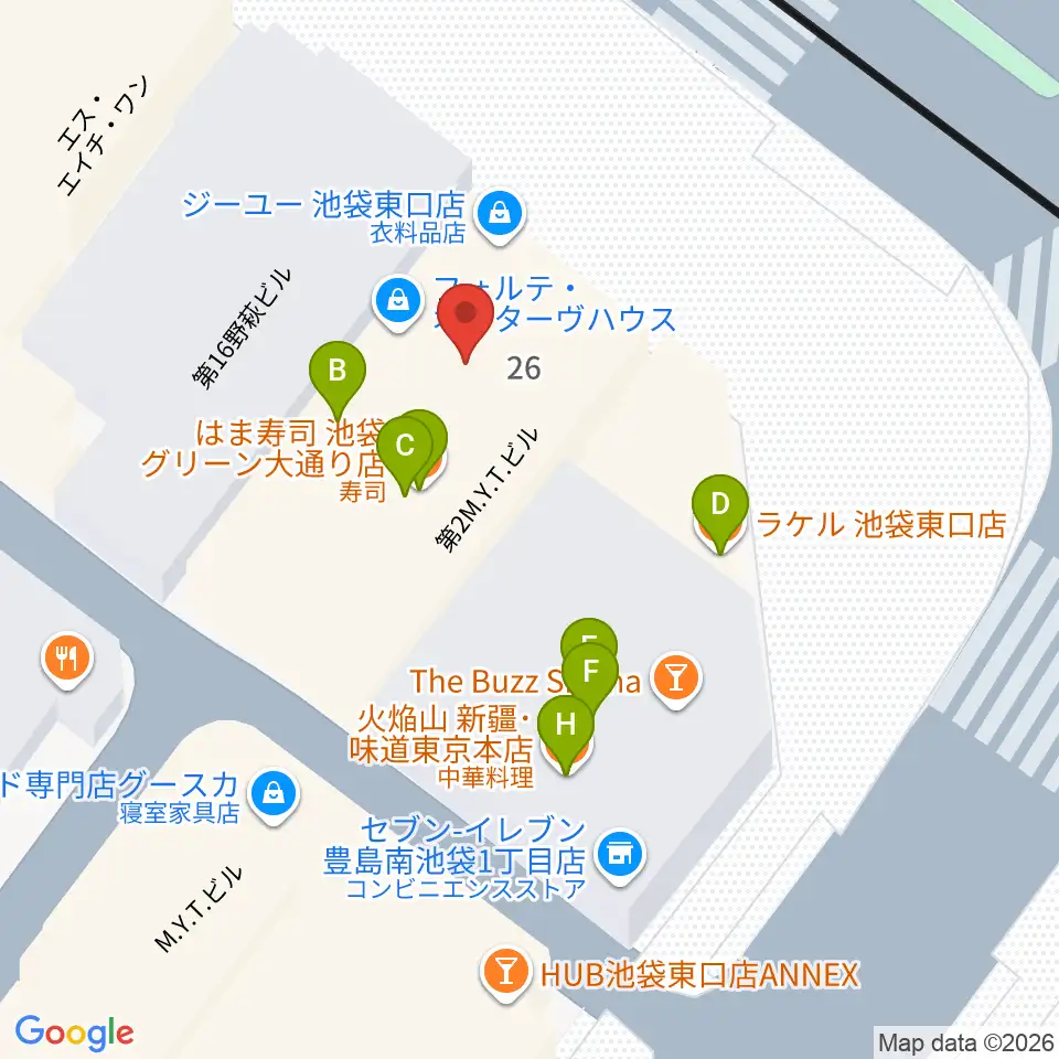 IMC池袋音楽学院周辺のファミレス・ファーストフード一覧地図