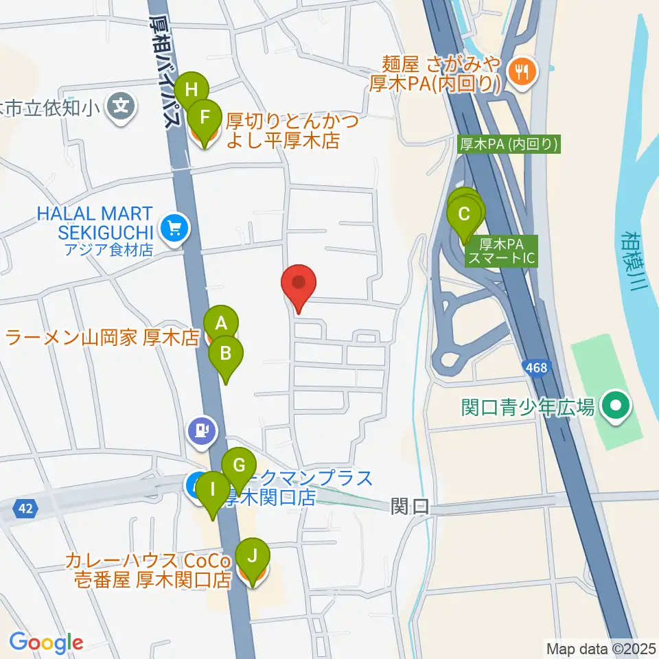 厚木のピアノ職人VIRA JAPAN周辺のファミレス・ファーストフード一覧地図