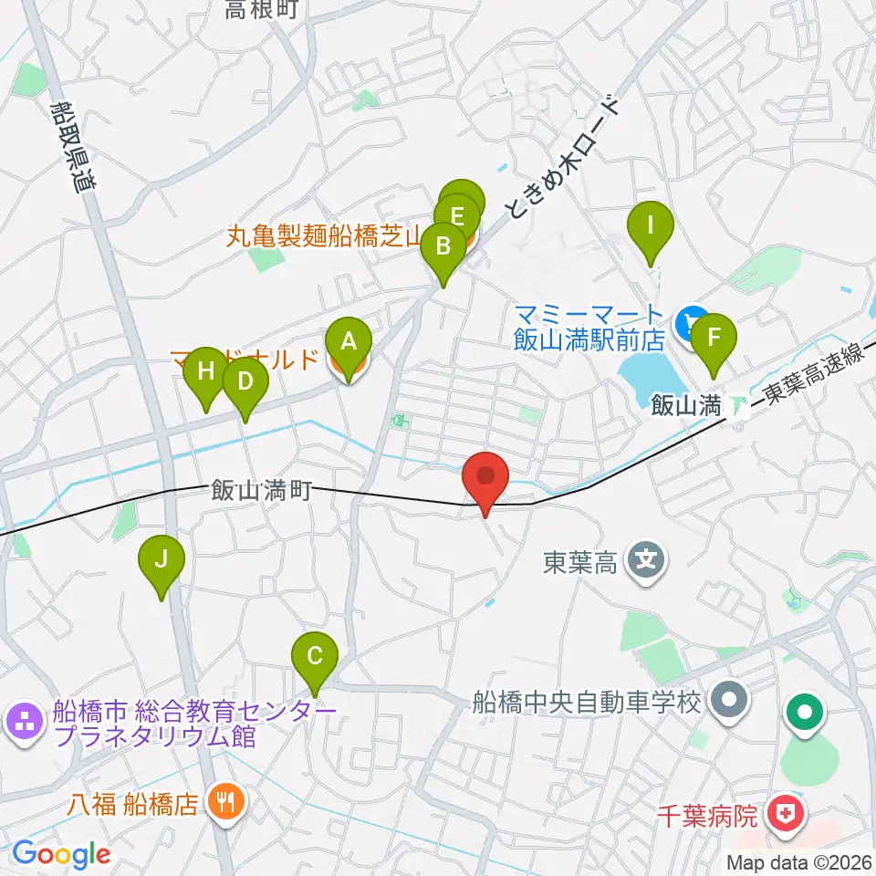 音楽空間SOLA周辺のファミレス・ファーストフード一覧地図