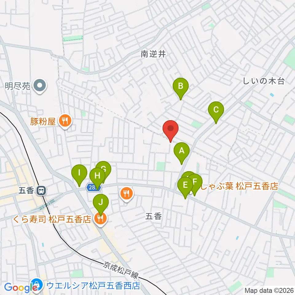 KSK松戸音楽教室周辺のファミレス・ファーストフード一覧地図
