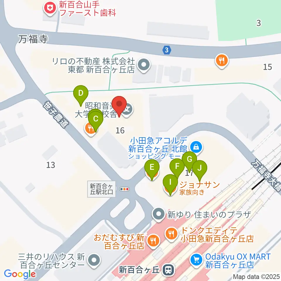 昭和音楽大学附属音楽・バレエ教室 新百合ヶ丘校周辺のファミレス・ファーストフード一覧地図