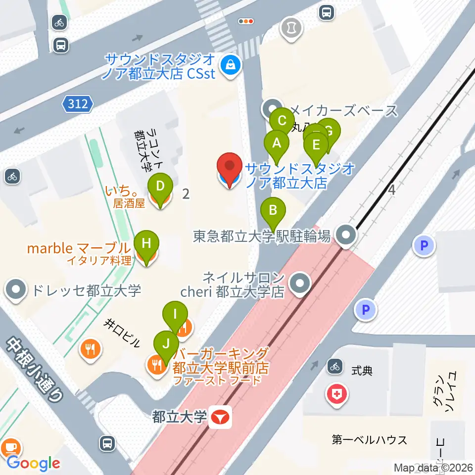 サウンドスタジオノア 都立大店周辺のファミレス・ファーストフード一覧地図