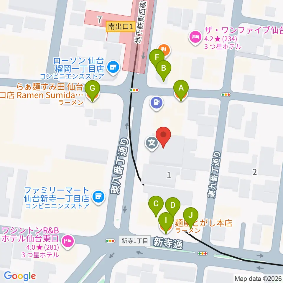 仙台スクールオブミュージック&ダンス専門学校周辺のファミレス・ファーストフード一覧地図