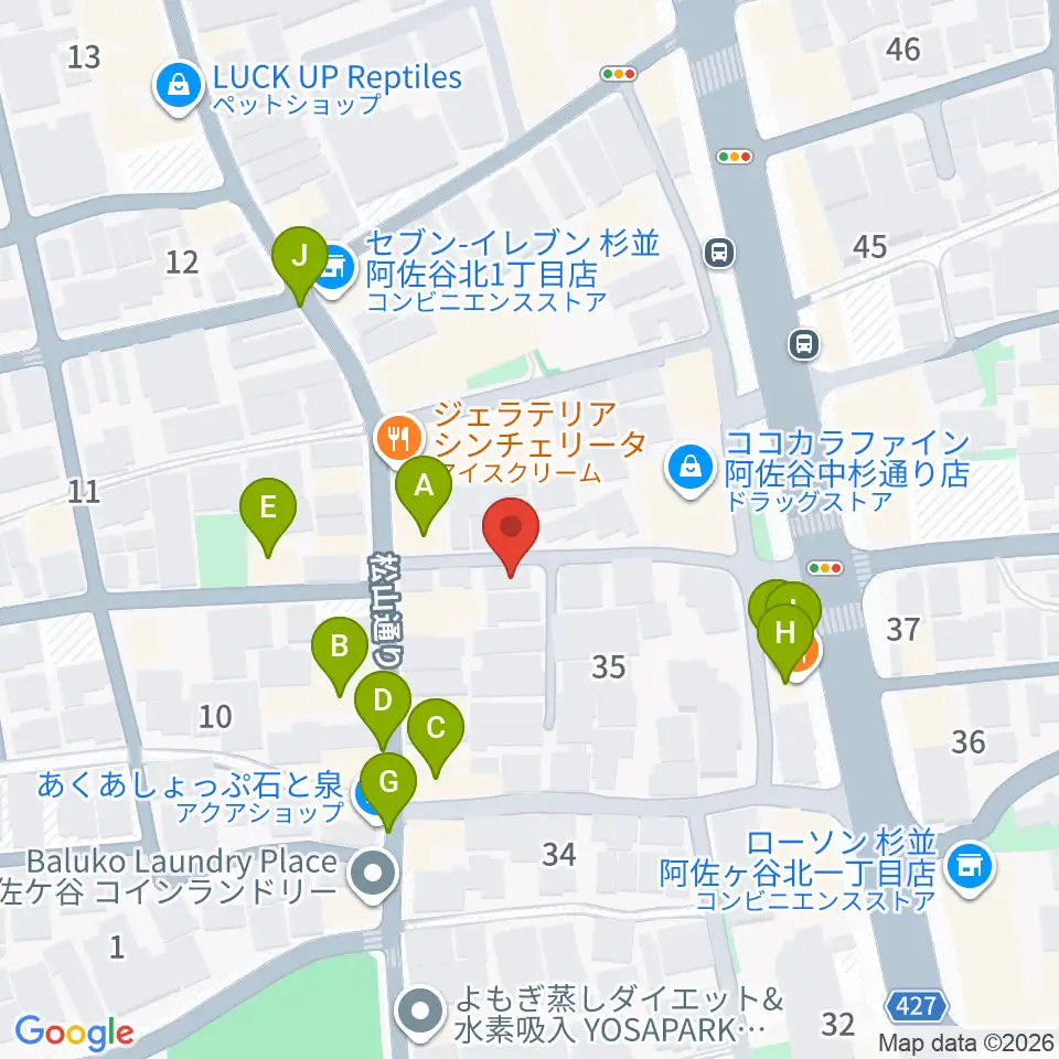 ヒストリークギターズ周辺のファミレス・ファーストフード一覧地図