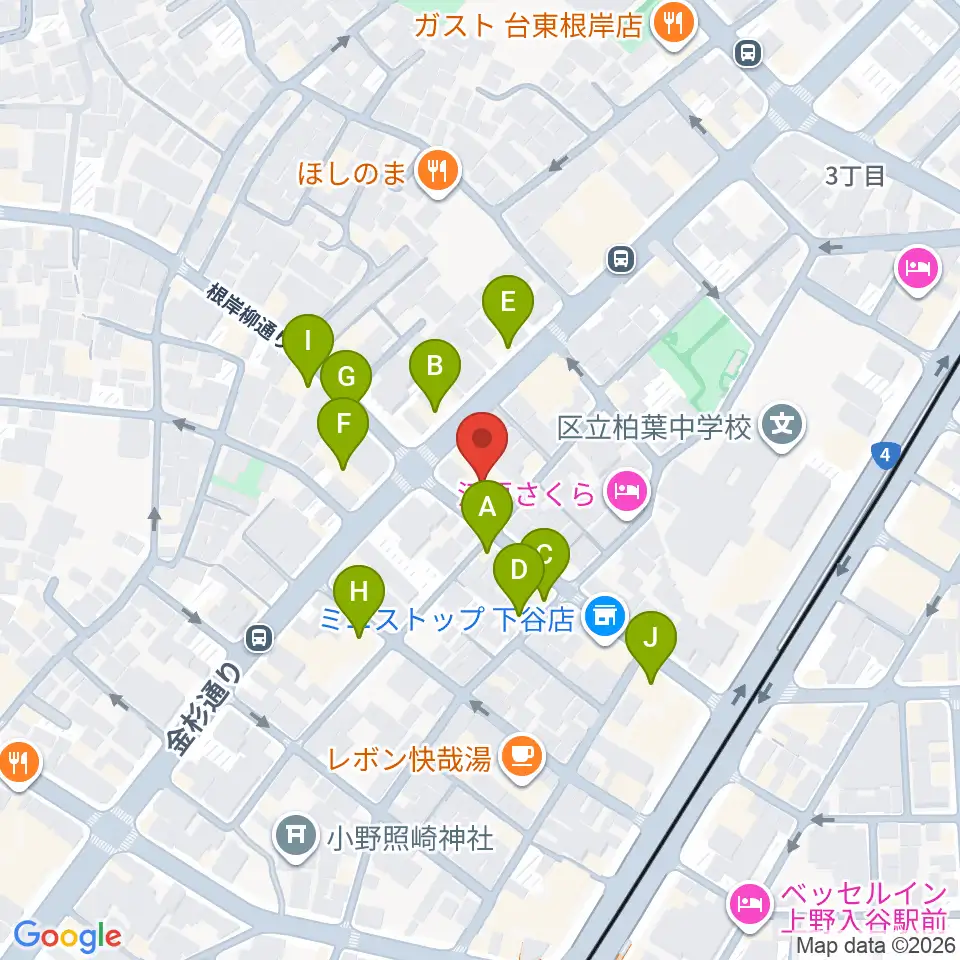 ギターショップ アウラ周辺のファミレス・ファーストフード一覧地図
