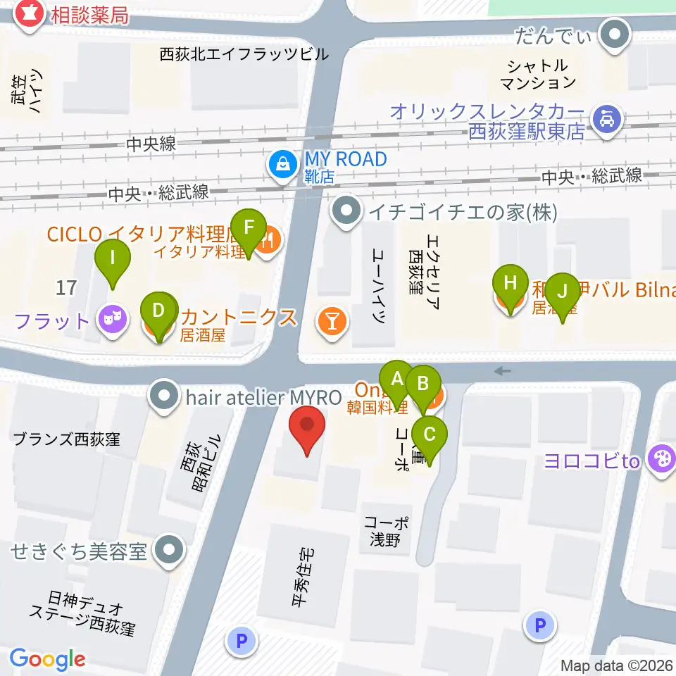ギターショップG&M周辺のファミレス・ファーストフード一覧地図