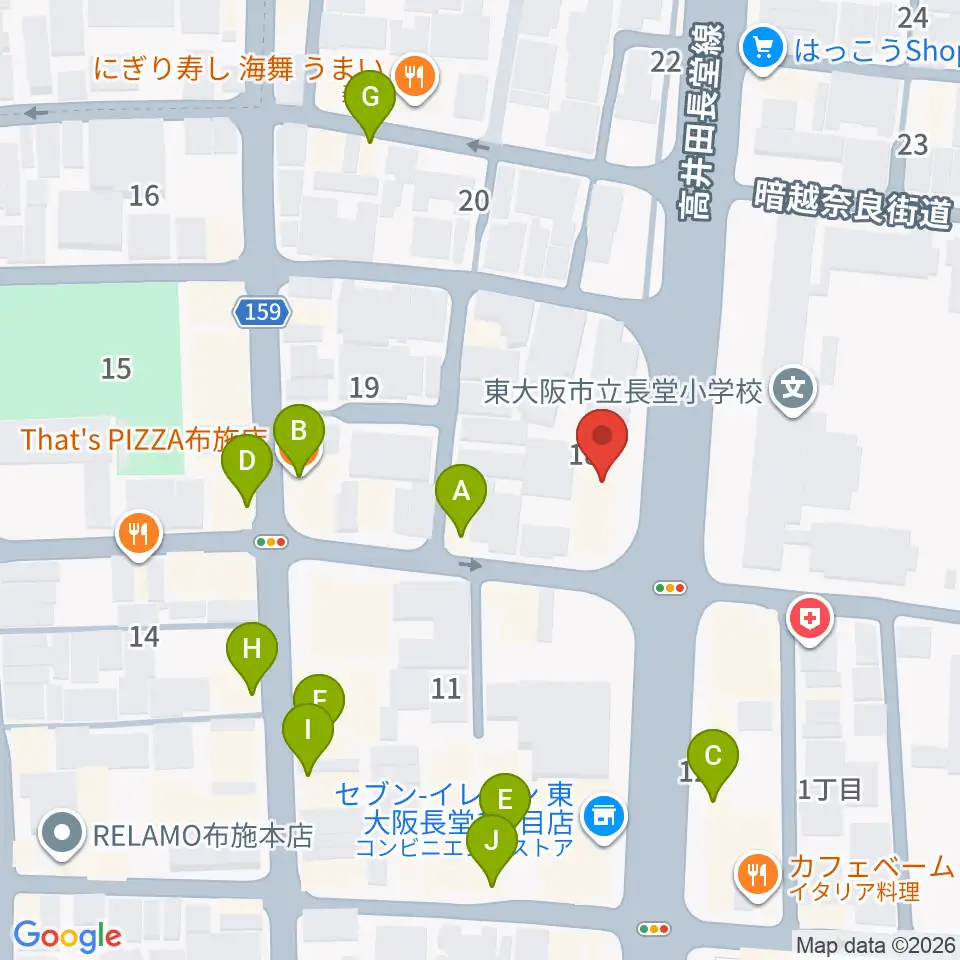 小阪楽器店 布施本店周辺のファミレス・ファーストフード一覧地図