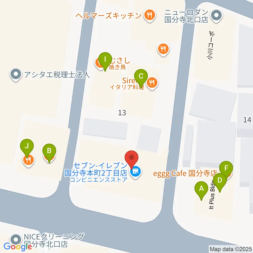 宮地楽器 国分寺北センター周辺のファミレス・ファーストフード一覧地図