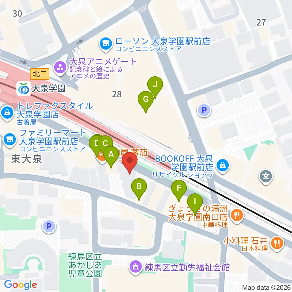 武蔵野楽器セサミクラブ周辺のファミレス・ファーストフード一覧地図