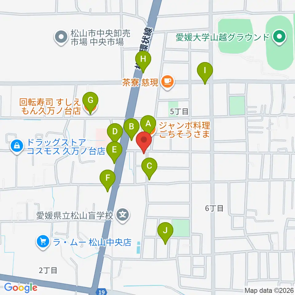 サウンドガーデンミュージックスクール松山本校周辺のファミレス・ファーストフード一覧地図