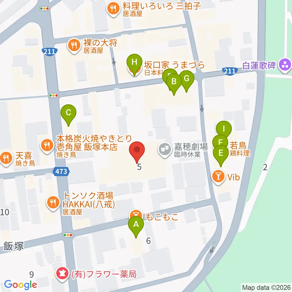嘉穂劇場周辺のファミレス・ファーストフード一覧地図