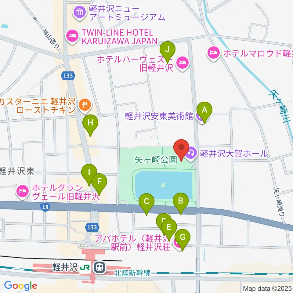 軽井沢大賀ホール周辺のファミレス・ファーストフード一覧地図
