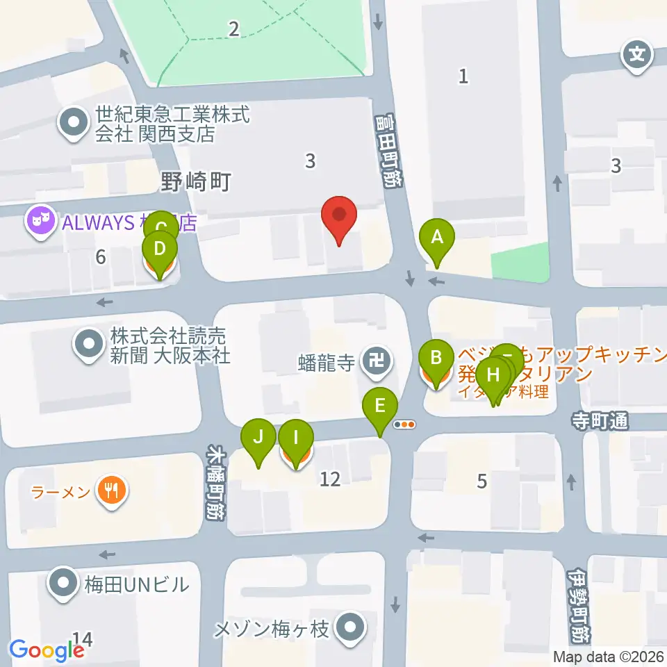 ボイトレ大阪 F-COMMUNITY周辺のファミレス・ファーストフード一覧地図