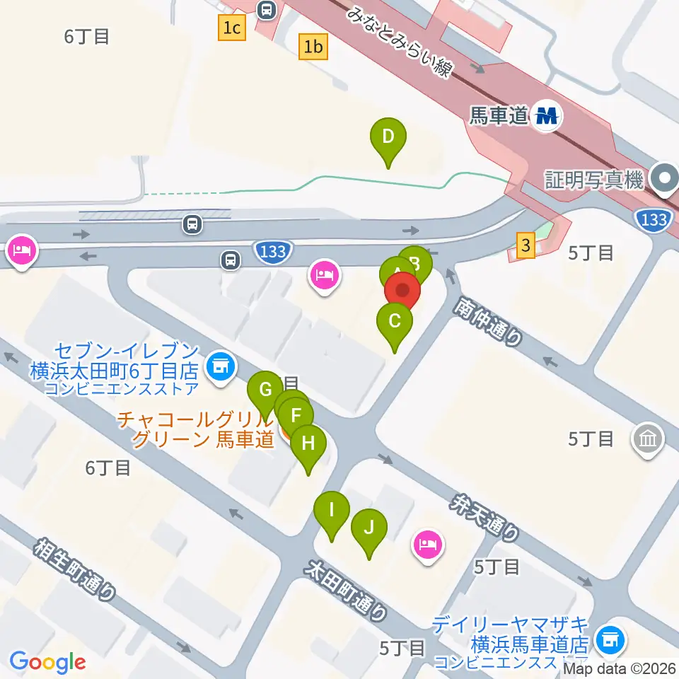 馬車道King's Bar周辺のファミレス・ファーストフード一覧地図