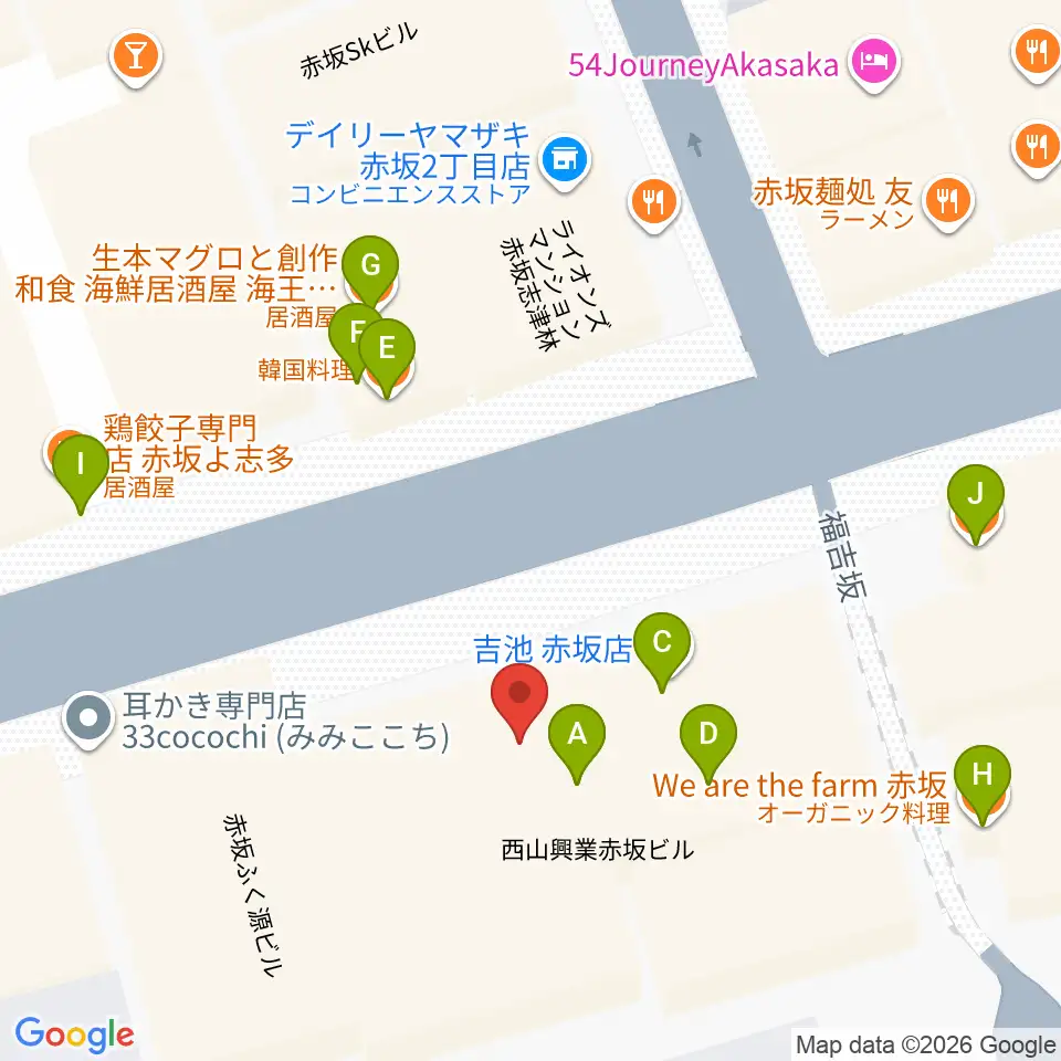 赤坂エルカミーノ周辺のファミレス・ファーストフード一覧地図