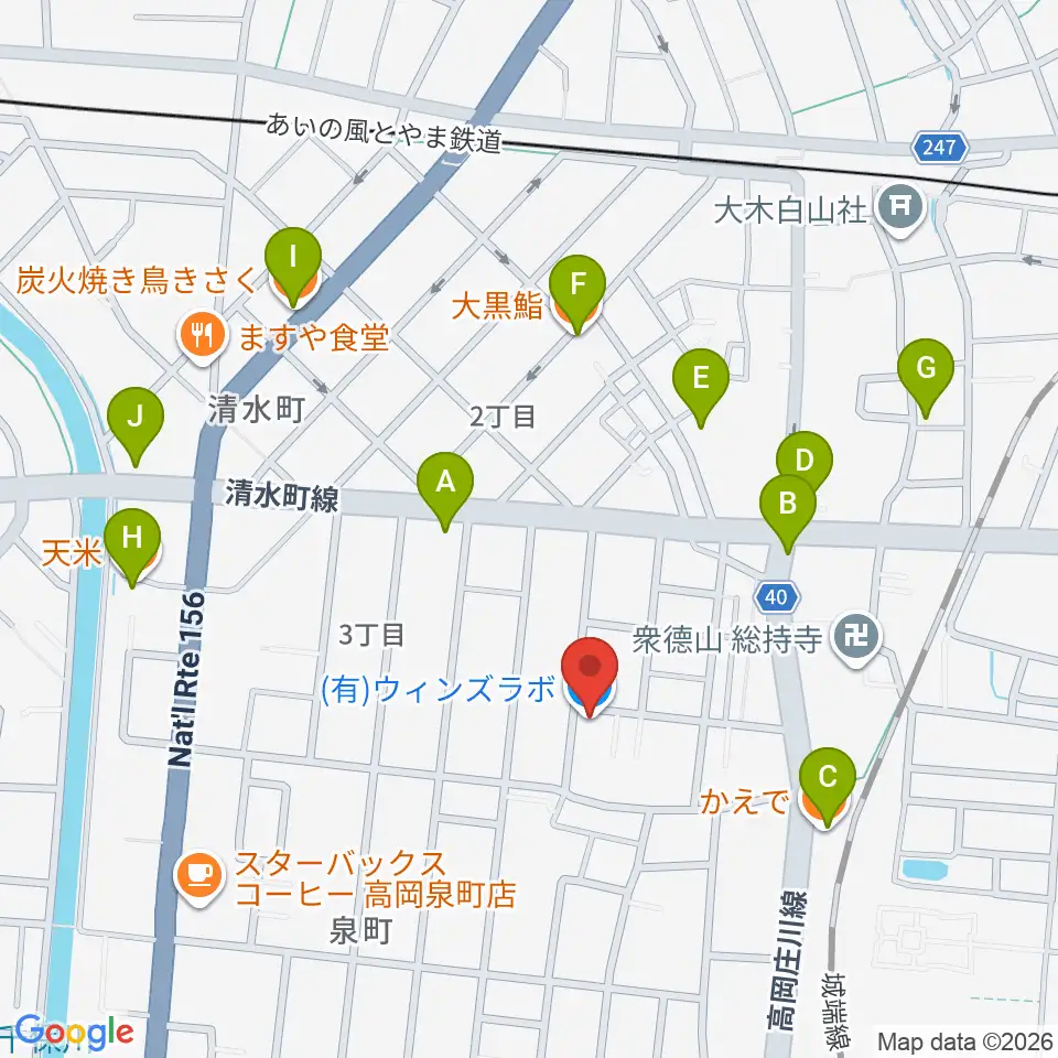 ウィンズラボ周辺のファミレス・ファーストフード一覧地図