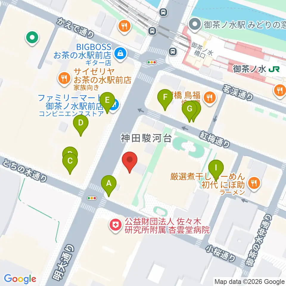 クロサワバイオリンお茶の水店周辺のファミレス・ファーストフード一覧地図